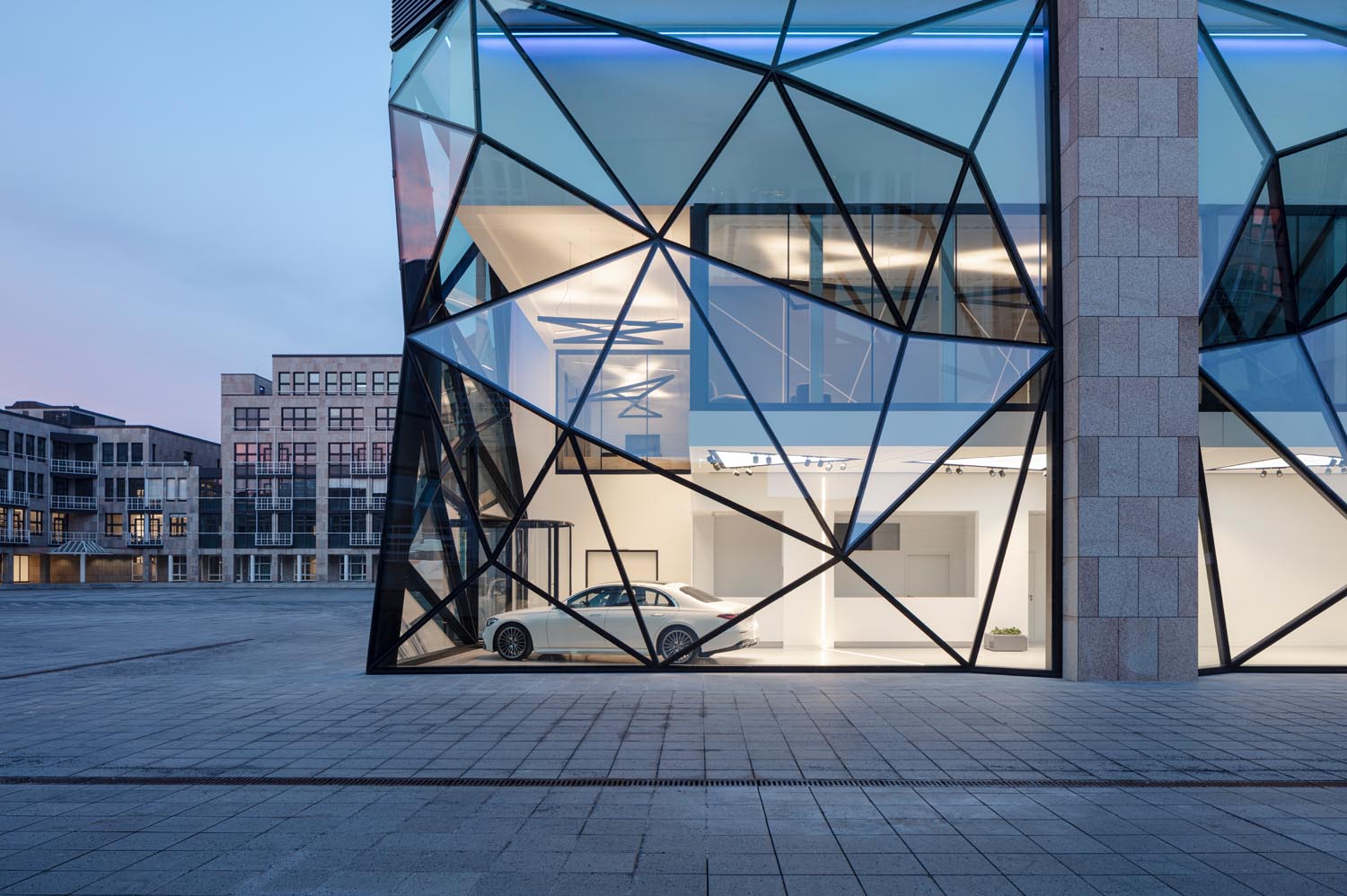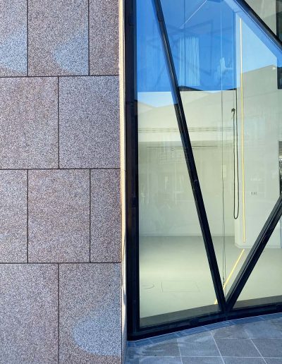 Das Verwaltungshochhaus der Daimler Hauptverwaltung erhielt im Zuge einer Revitalisierung eine gläserne Lobbyfassade. Das Design entwickelte BM + P Architekten aus Düsseldorf. Die komplette Natursteinleistung nach dem Rückbau und dem Einbau der Glasfassade lag in unserer Hand. Inklusive detaillierter Bestandsaufnahme, 3D-Vermessung, Materialauswahl für die Neuplatten sowie deren Montage und Verankerung am Rohbau.